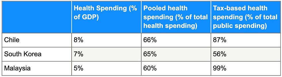 Both Malaysia and South Korea have managed to reach UHC in 2-3 decades even with lower national income levels than the countries that preceded them. Pooling funds in Malaysia are generated almost entirely through general taxes, while South Korea pools its funds through payroll contributions.